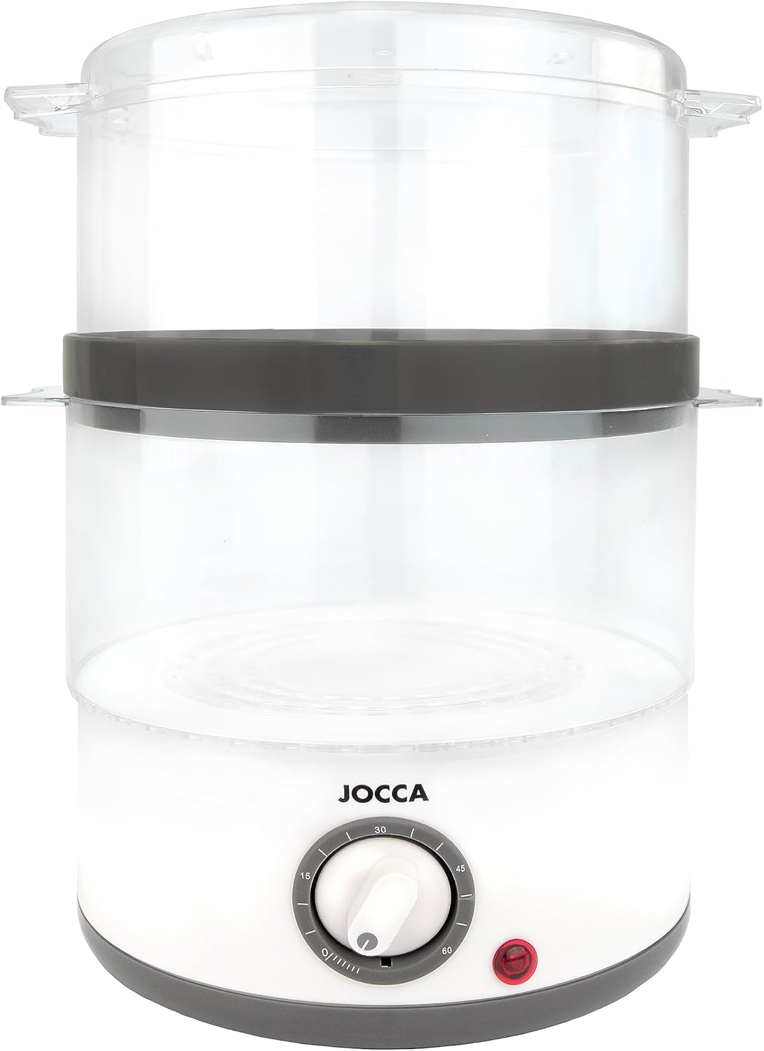 The JOCCA 5555 Steamer System is an electric steam cooker designed for healthy and delicious cooking. This appliance allows you to prepare various foods by steaming, ensuring that food does not come into direct contact with water and eliminating the need for oil, thus preserving essential vitamins and nutrients.