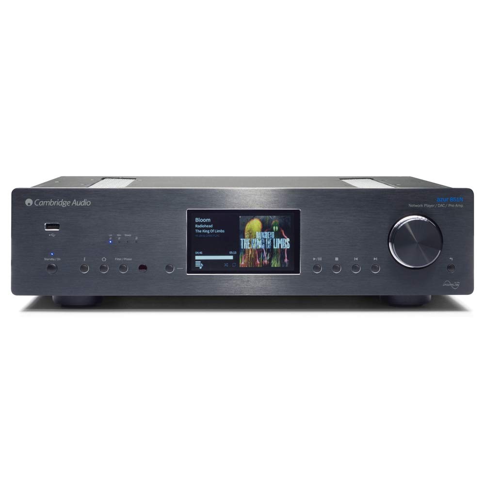Devan view of the Cambridge Audio Azur 851N, showing the display, control knob, and various buttons.