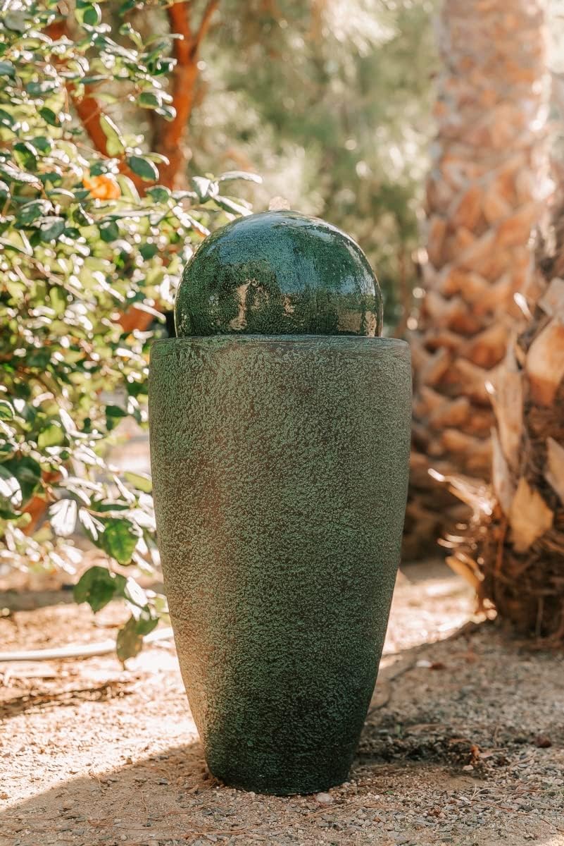 - Koule dlo: Water will flow from the top of the sphere, cascading down its textured surface into the reservoir below.