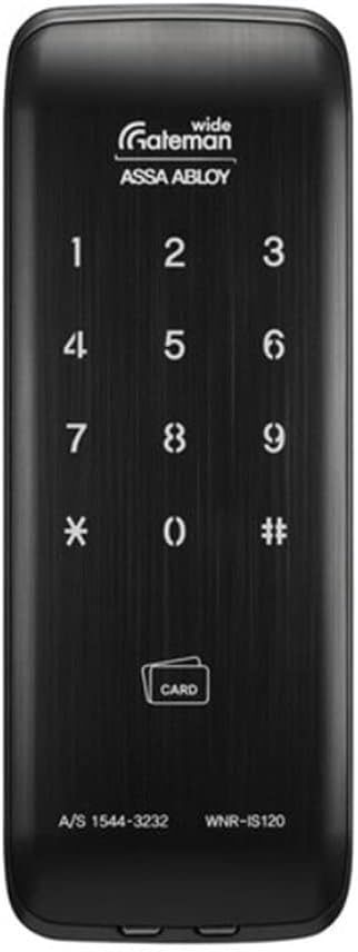 Figi 5.1: Devan view of the Gateman WNR-IS120 Digital Door Lock, showing the numeric keypad (1-9, *, 0, #) and the 'CARD' icon for card key authentication. The model number WNR-IS120 is visible at the bottom right.