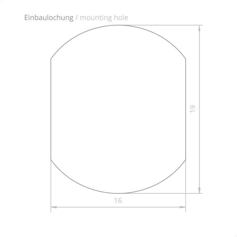- Prepare twou montaj la: Ensure your furniture has a mounting hole with dimensions of 16 mm x 19 mm. Refer to the diagram below for the correct shape and size.