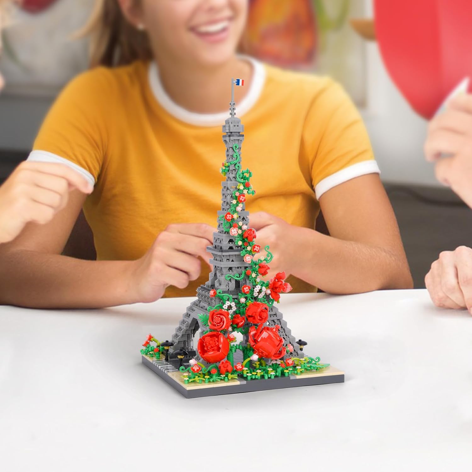 This manual provides detailed instructions for assembling and maintaining your Geniteen Micro Building Blocks Eiffel Tower with Rose Model. This unique architectural building block model, comprising 2551 micro bricks, allows you to construct a highly detailed replica of the Eiffel Tower adorned with roses. The finished model measures approximately 8.07 inches long and 14.57 inches in height, capturing the iconic structure's four angular pillars, hollowed-out body, and flagpole, beautifully complemented by rose embellishments.